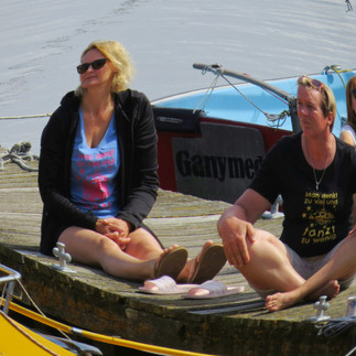 Der Donnerstag steht bei schwachen Winden unter der Wolke der kommenden Prüfungen. Meine Gruppe zeigt sich recht zuversichtlich, möchte allerdings noch auf dem Motorboot üben, weil sie durch den starken Wind am Mittwoch verunsichert sind. Natürlich müssen wir auch das Anlegen am Steg üben. Dort stehen aber im Pulk viele Kinder, die ins Wasser springen. Da muss ich doch sehr deutlich werden, mit dramatischer Gewitterstimme fordere ich die Einstellung der Badeaktivitäten. Die Situation hat mich gestresst, endlich lege ich mit Justyna, Sally und Philo an, überlasse das Boot den Fehmeranern, die da plötzlich stehen und auch fahren wollen. Sie haben sich nicht bei mir per Mail gemeldet, wie vereinbart. Danach versuche ich, den Piratenfilm zum Laufen zu bringen. Mit Nikkis Hilfe können wir das Werk von Ole bewundern…..Am Freitag, so gut wie kein Wind und beständiger Nieselregen. Die Motorprüfungen, bei denen ich mit an Bord sind laufen gut, wenn auch Sally sehr aufgeregt ist. Die Kommandos kommen zügig…..Beim praktischen Segeln liegen wir an der Paddelgrenze…doch es läuft gut. Wehrmutstropfen: zwei Schüler können nicht teilnehmen, weil sie sich in Kiel nicht angemeldet haben, sie dachten ihr heimischer Prüfungsausschuss würde das übernehmen. Sofort korrigiere ich meine Infoblätter, um zukünftige Strandungen dieser Art zu meiden. Philo verabschiedet sich mit fischigen Socken für mich – in kurzer Zeit sind mir ein paar Menschen ans Herz gewachsen. Die Piraten feiern ihre Kinderdisco, die vielen Helfer und Jann – unser Koch – haben sich ins Zeug gelegt. Scheine werden verteilt, kleine Reden gehalten…..Ausklang. Am Wochenende sind Klausi und Jannis zu Besuch, Moritz bastelt an Gelbfieber, Nikki geht mit Flutschfinger bei strahlendem Wetter auf Törn. Mit Frieda, Laura, Mareike, Stefan, Kathrin, Stanzerl, Fine und Kilian segeln wir mit zwei Menhiren in den Sonneuntergang. Auf dem Rückweg kommt es zu verwerflichem Paddeleinsatz unter den Lichter des ersten Richtfeuers von Heiligenhafen. Sind schon am Samstag die ersten Piraten eingelaufen, so strömen sie am Sonntag vehement ein. Nils ganz entspannt, eine sehr gute Helfercrew macht ihm die Leitung leicht, freut sich auf das neue Camp. Ole arbeitet noch an den Filmaufnahmen des ersten Films. Nach der Hafenrundfahrt besprechen wir im Helferteam den kommenden Tag. Mit Leila, Marlene und Leonie bespreche ich das Ausbildungskonzept. Wir sind gut aufgestellt. Nach einem schönen Curry von Ulf – unserem neuen Koch – schnacken wir uns in den doch kühlen Abend…..